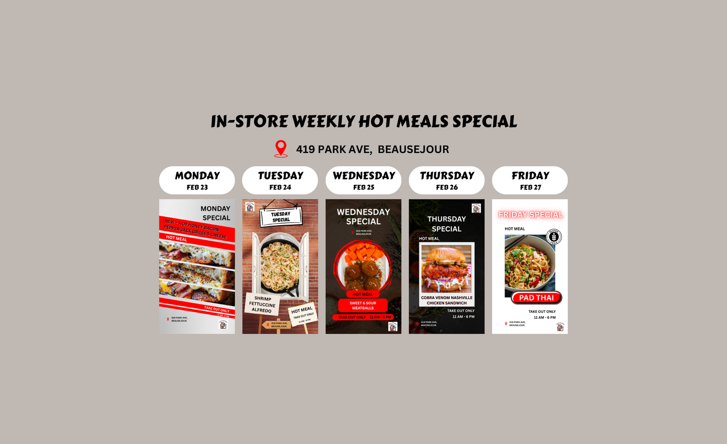 Place your order anytime on our website, and select a pick up location. Order cut-off for the week is Sundays at 11pm. Orders are delivered that week on Thursdays, fresh out of the kitchen! If you order after 11pm on Sunday, your order will be ready for the following week.